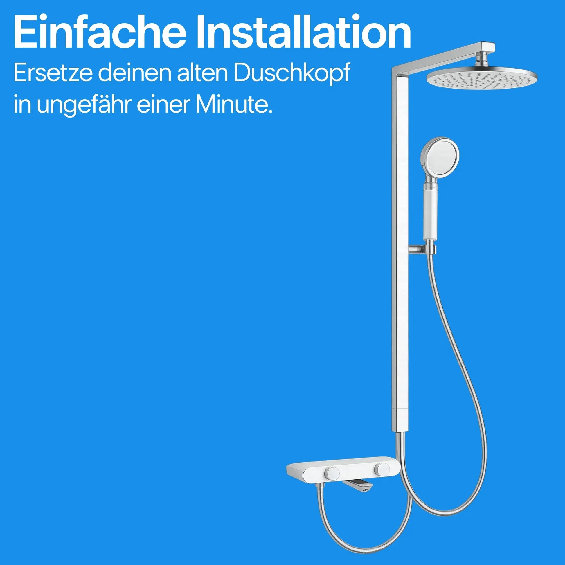Der Duschkopf mit Filter sorgt nicht nur für weiches Wasser auf Haut und Haar. Er schützt auch dein Badezimmer. Weniger Kalk im Wasser bedeutet, dass Armaturen, Fliesen und Duschwände länger sauber bleiben. Du musst seltener putzen und sparst Zeit. Die Montage ist ganz einfach und funktioniert ohne Werkzeug. Perfekt für jeden Haushalt. Ob zu Hause, im Gäste-WC oder auf Reisen, der Duschkopf mit Filter ist überall schnell einsatzbereit. Auch Kinder, ältere Menschen oder Personen mit empfindlicher Haut genießen den sanften Wasserstrahl.