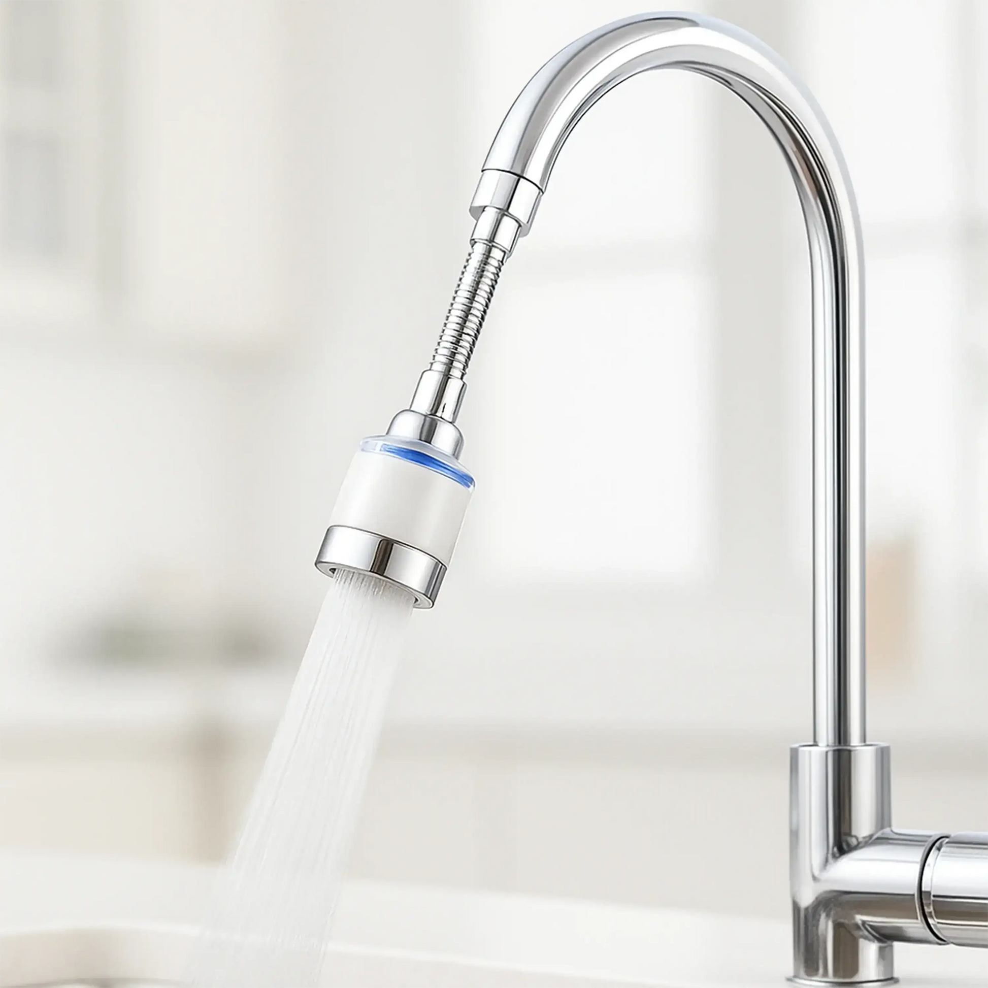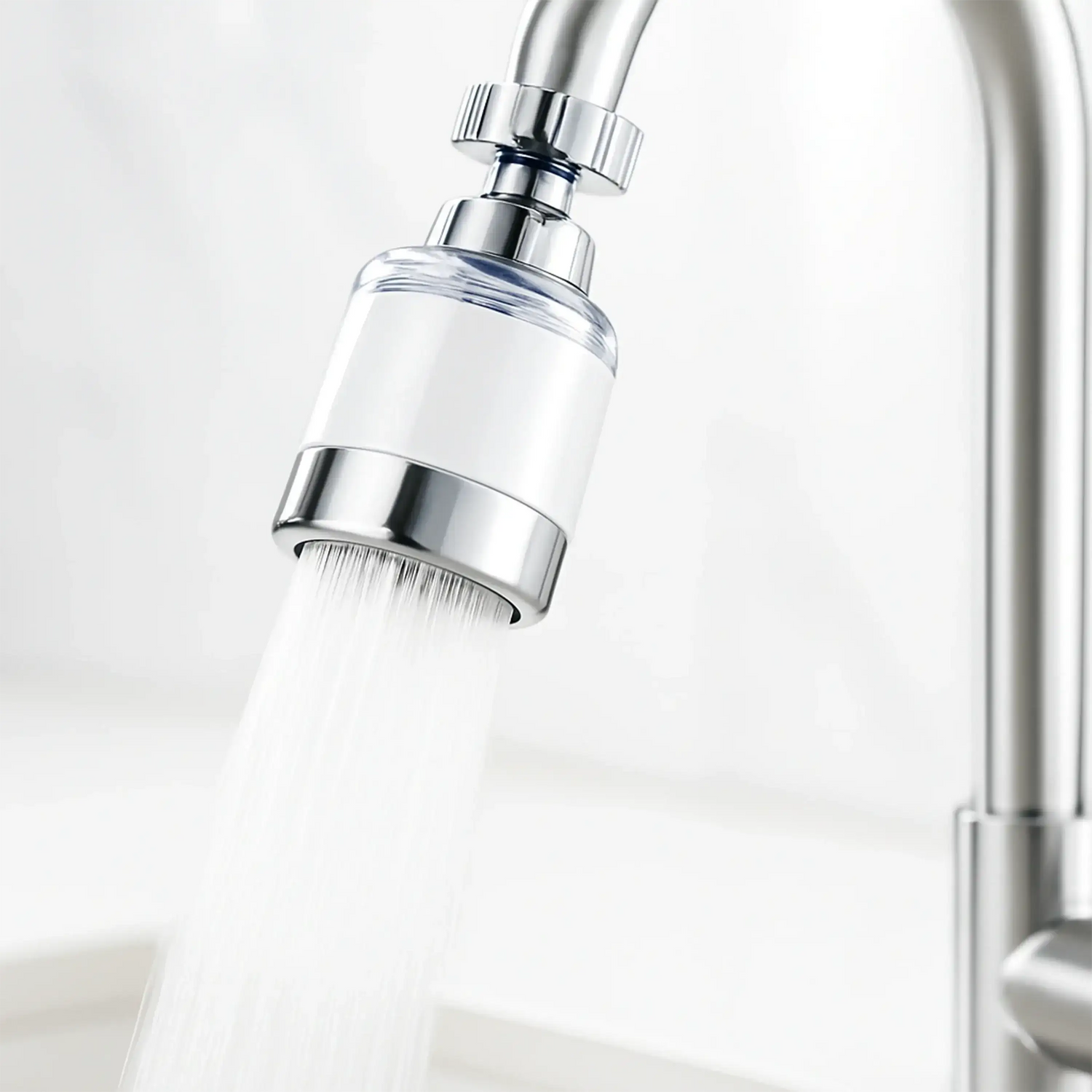 Der Filter wird direkt auf den Wasserhahn geschraubt und reinigt das Wasser beim Durchlaufen. Er reduziert Kalk, Chlor, Schmutz, Rost und andere Verunreinigungen – für sauberes, hautfreundliches Wasser.
